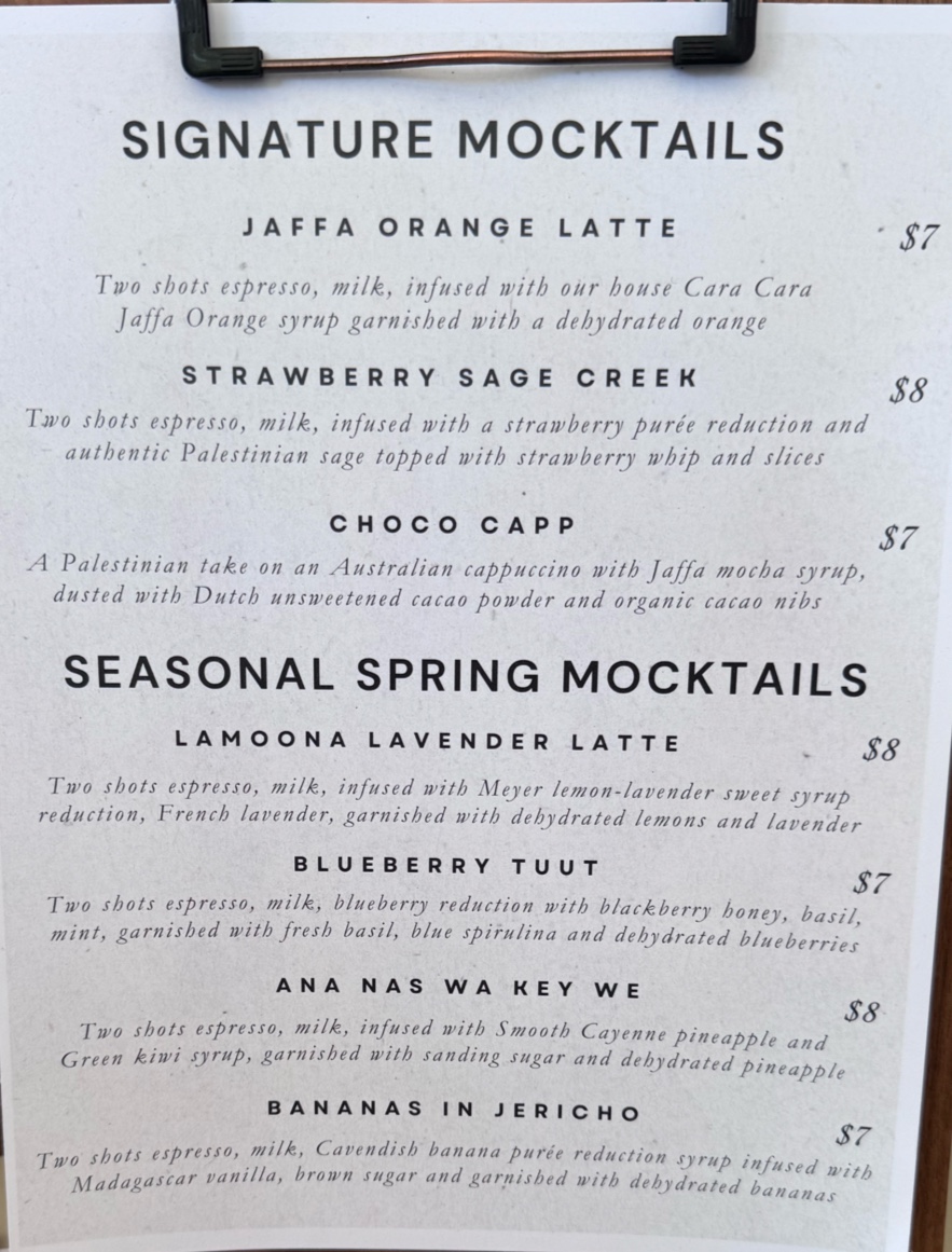 Jaffa Coffee Roasters Menu